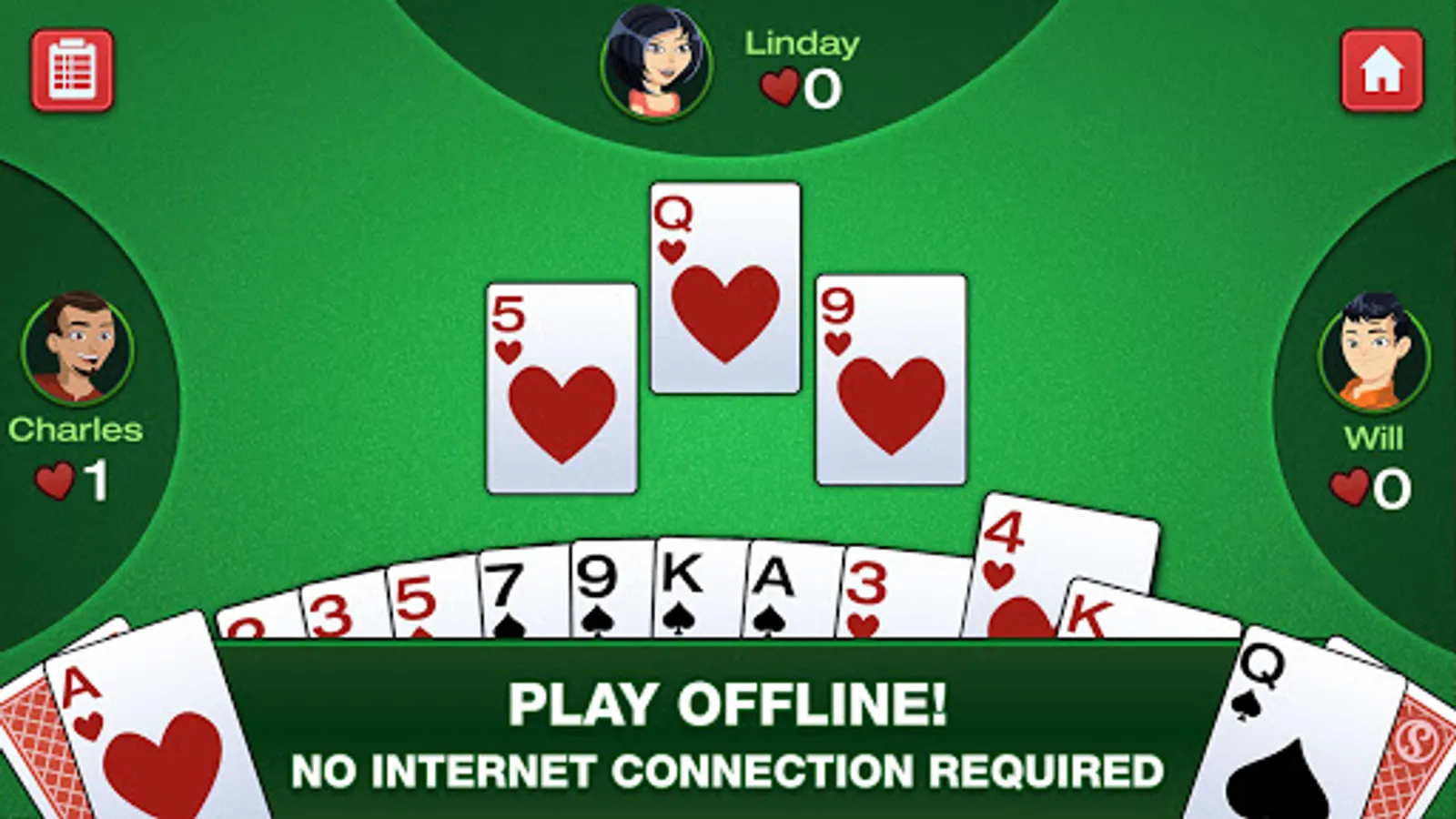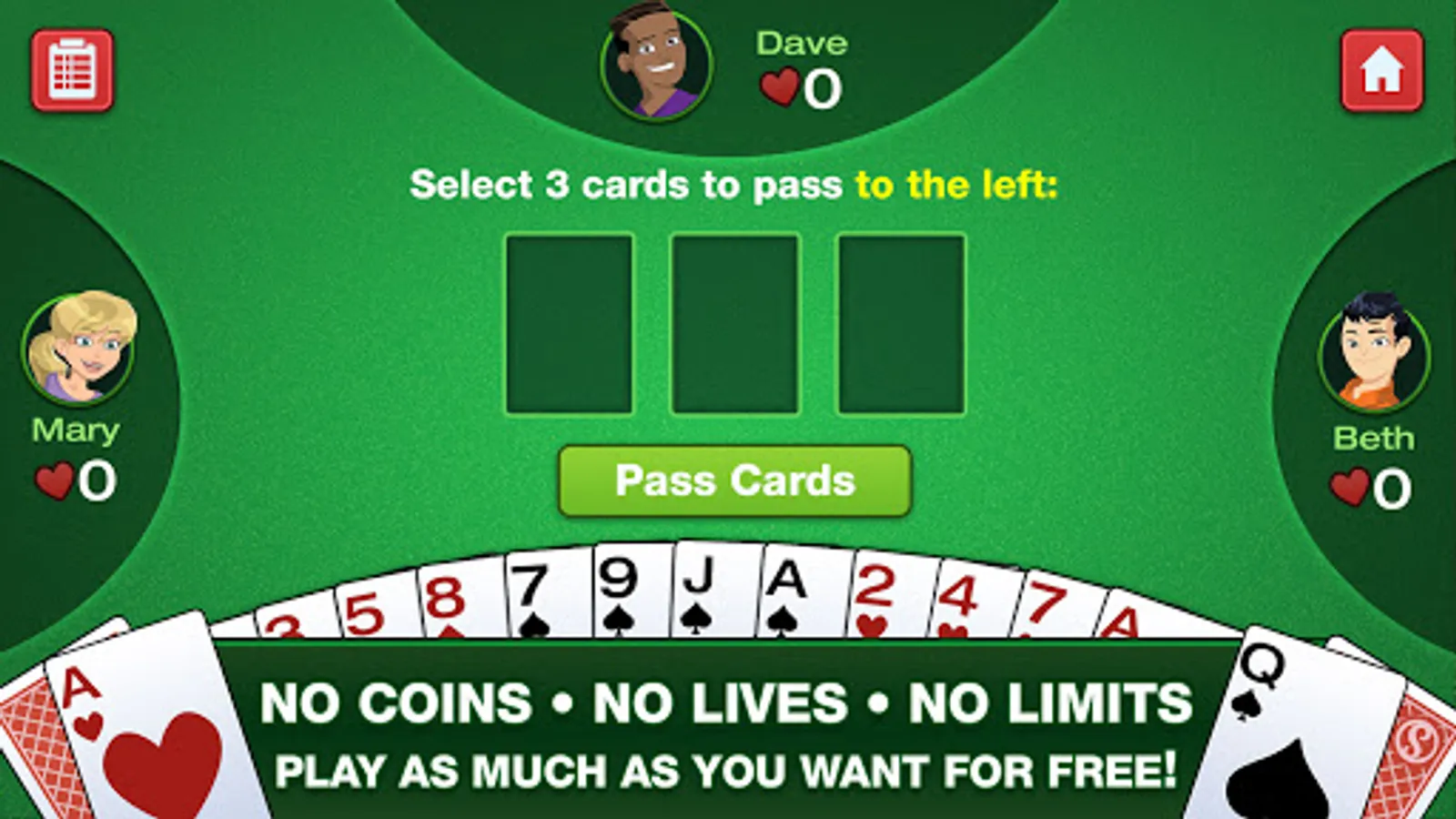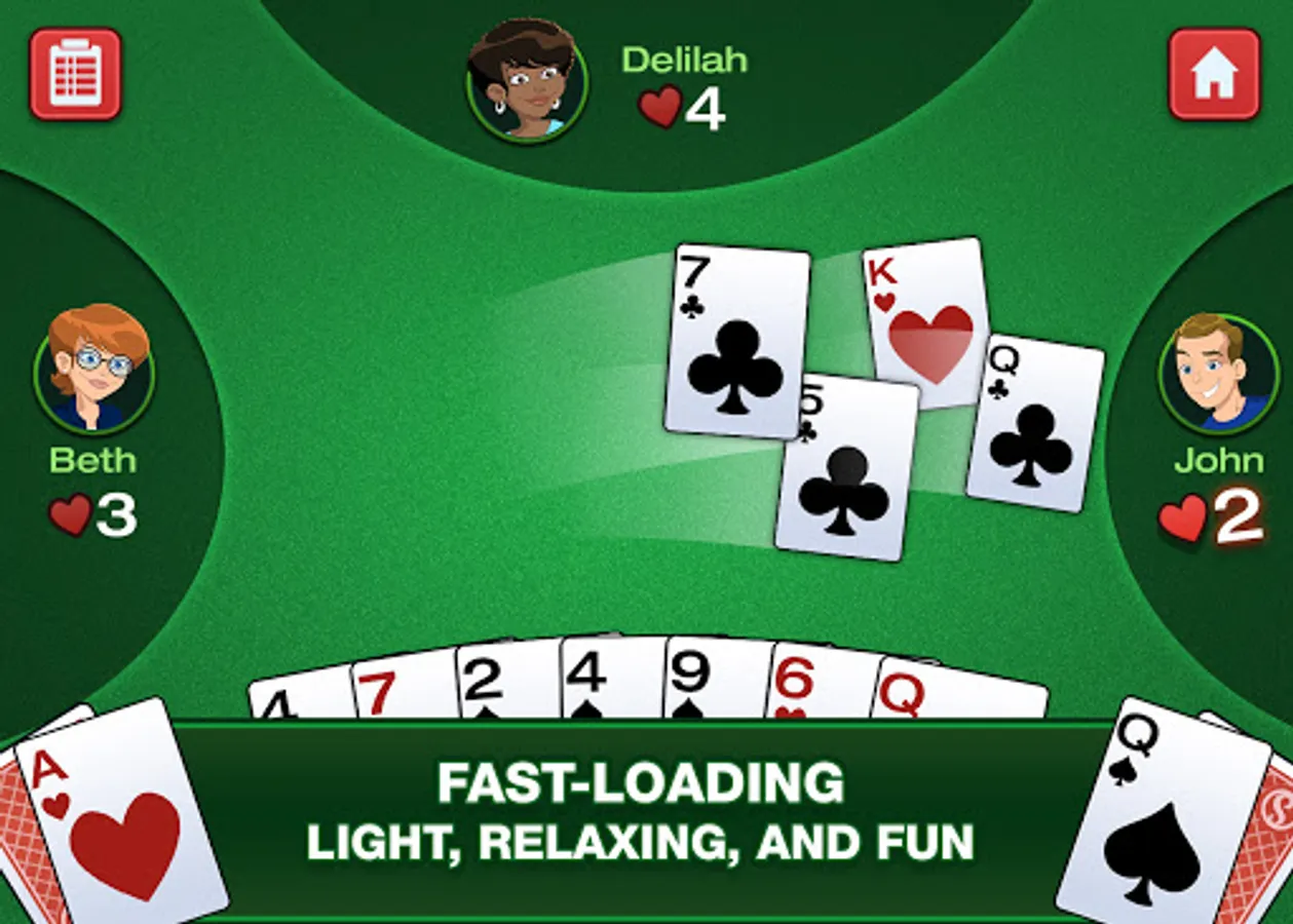 Simple Rickety Kate is your favorite trick-taking card game, now on your Android device. Challenge intelligent computer opponents to as many games as you like, without worrying about lives, timers, or other limitations. The popular card game, also known as Hearts, Black Lady, Black Maria, Dame de Pique and Black Widow, is a family card game favorite.