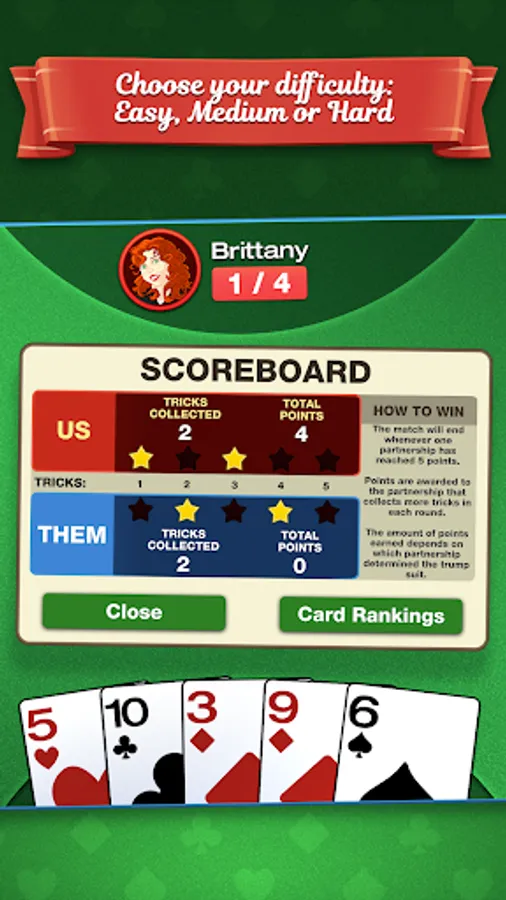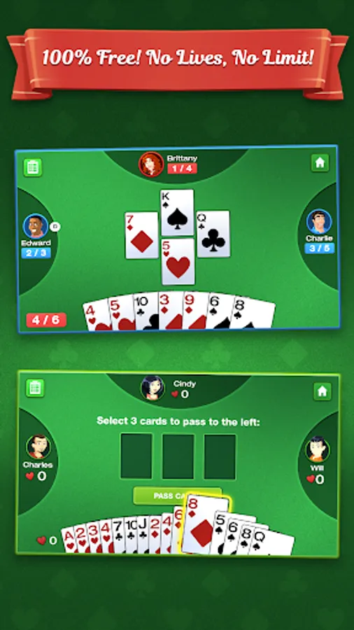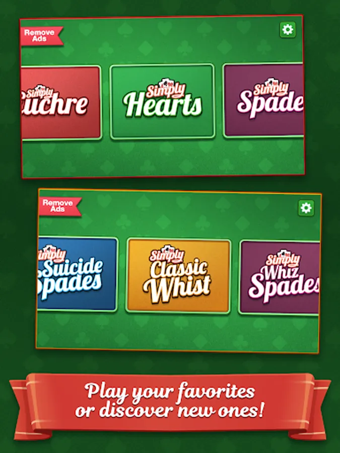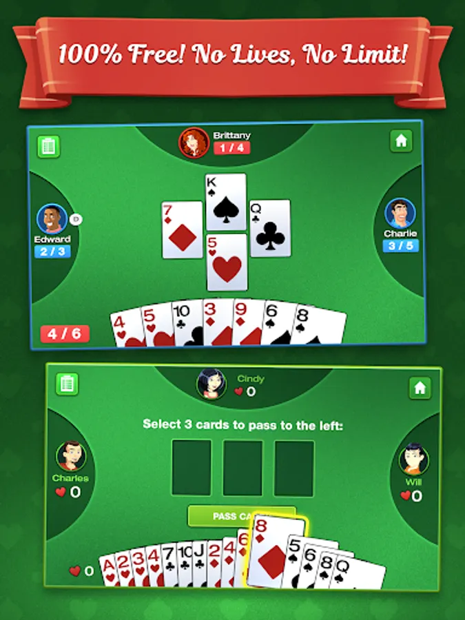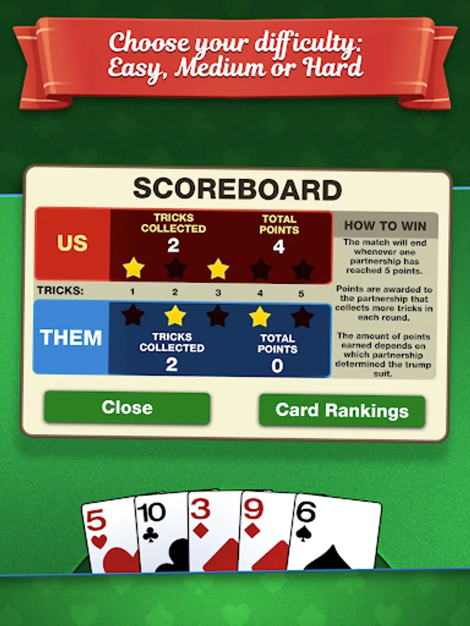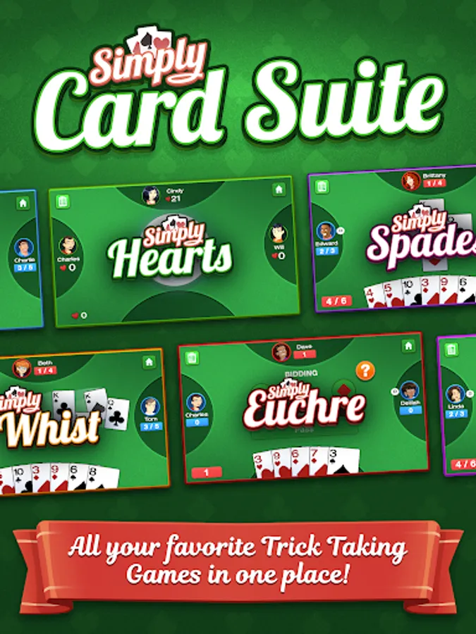 Play one of the best classic trick-taking card games! This collection gives you the fun and relaxing experience you know and love. Play anywhere, with computer opponents that feel so realistic it's like they’re sitting at the table with you. The popular card games Classic Hearts or Rickety Kate, Omnibus Hearts, Bid Whist, Classic Whist, Euchre, Spades, Suicide Spades, Whiz Spades, Solo Spades and Mirror Spades are favorite family card games. Download and play the best free card suite wherever you go.