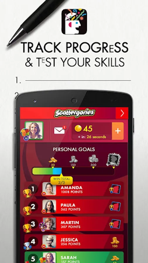 THINK FAST! Name a fruit that starts with the letter "B". What about an animal that starts with the letter "R"? The more creative your answers, the more points you score! Challenge a random opponent or play with your friends and family. With the Scattergories app, the party never has to end!
