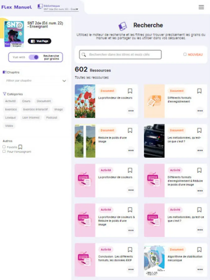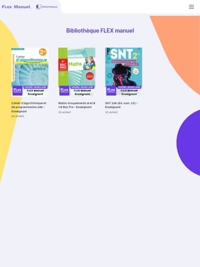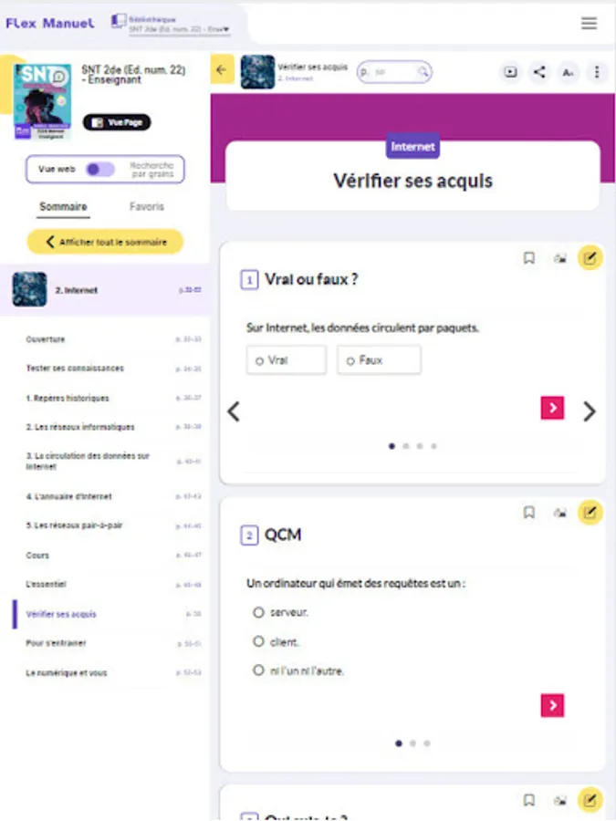 FLEX Manual allows the consultation of Flex manuals on tablet and phone. With FLEX Manual, I can practice the exercises in my manual and find my answers online. Connection possible from the ENTs or the Edulib media library.