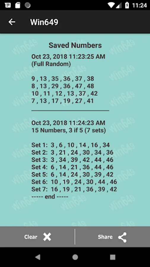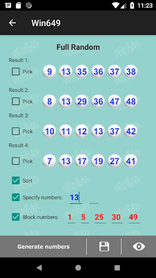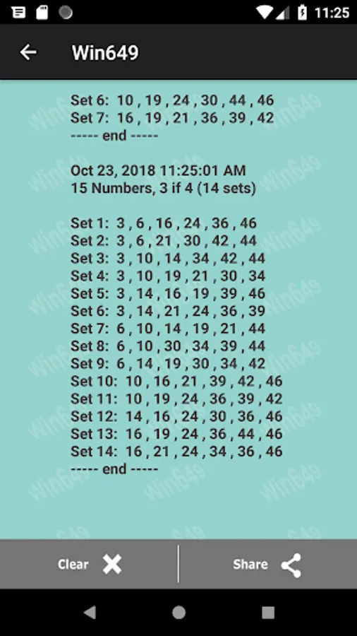 2. Most numbers generated by this app are within combinations of high and low numbers. 1 to 25 would be the low numbers and 26 to 49 are high numbers. Statistically, around 76% of the winning numbers are from mixed of high and low numbers. Pick numbers with these combinations to have more chance to win.