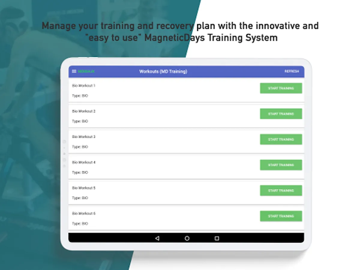 The use of MD App Bio is exclusive for MagneticDays "Bio" Training Systems and it does not work for other MD systems like JARVIS classic, J-BIKE, and more).