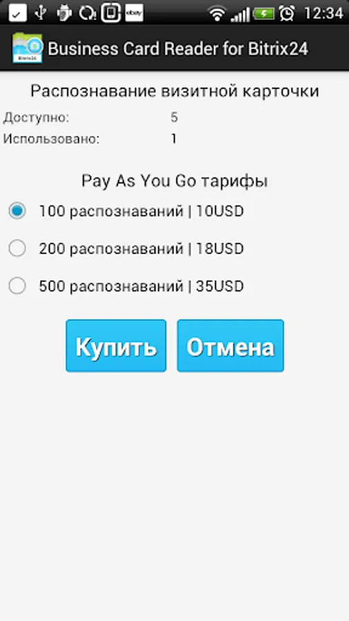 It’s a FREE version with a limited amount of business card recognitions. You can scan 10 business cards to test how the application works, after that you need to buy recognitions.
