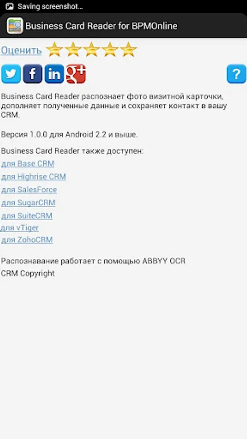 Business Card Reader for Creatio (formerly bpm'online) CRM is the easiest, fastest and secure solution for transferring information from paper business cards into the CRM systems using the camera of your smartphone. Take a picture of a business card and the application will scan and instantly export all card data directly to your CRM. In addition, this app will help you learn more about a potential client, partner or colleague. It is one of the best apps for CRM systems.