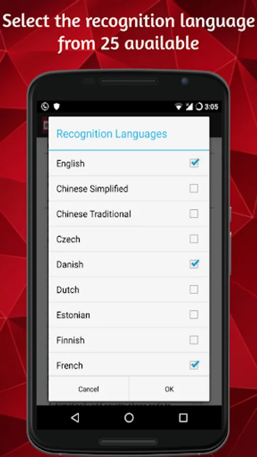 Supported recognition languages: