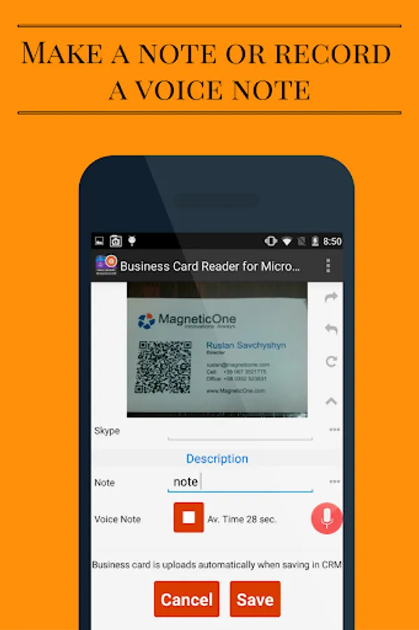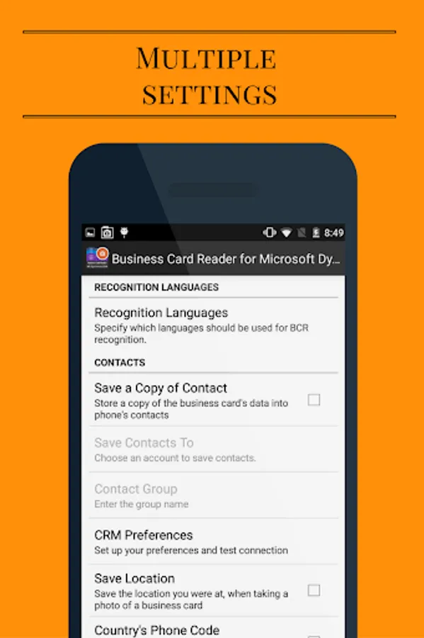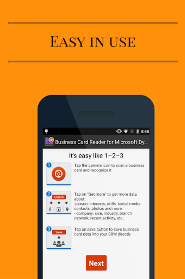 Business Card Reader for MS Dynamics CRM  is the easiest, fastest and secure solution for transferring information from paper business cards into the CRM systems using the camera of your smartphone. Take a picture of a business card and the application will scan and instantly export all card data directly to your CRM. In addition, this app will help you learn more about a potential client, partner or colleague. It is one of the best apps for CRM systems.
