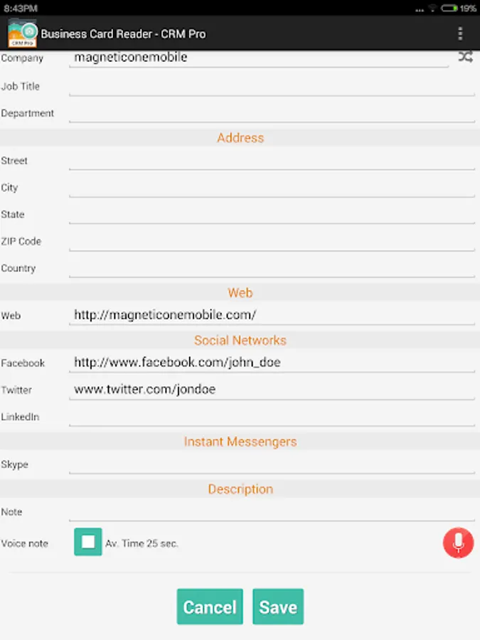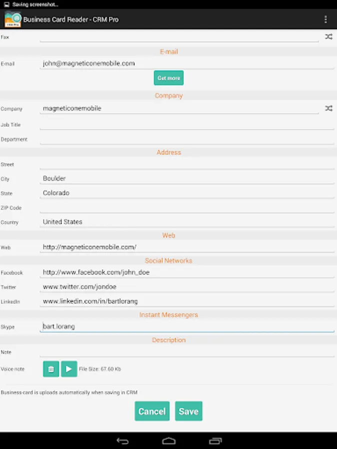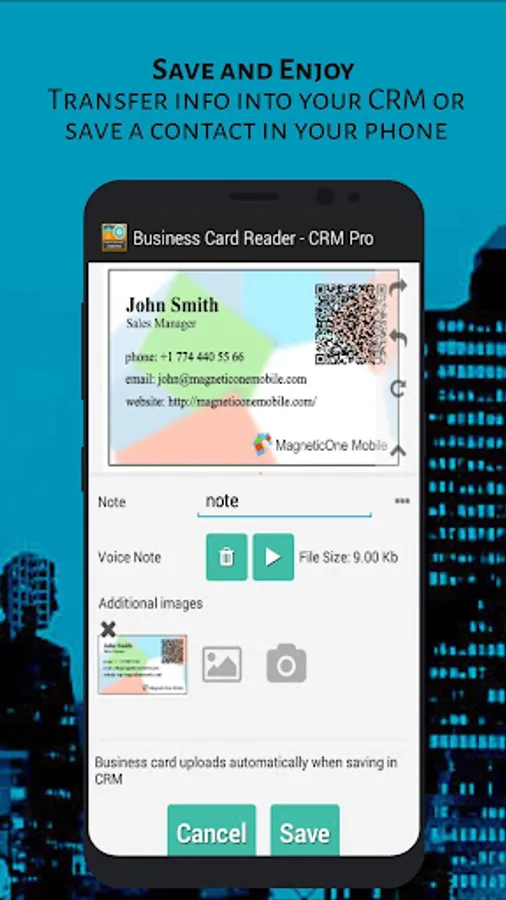 - Add text and voice notes for each business card