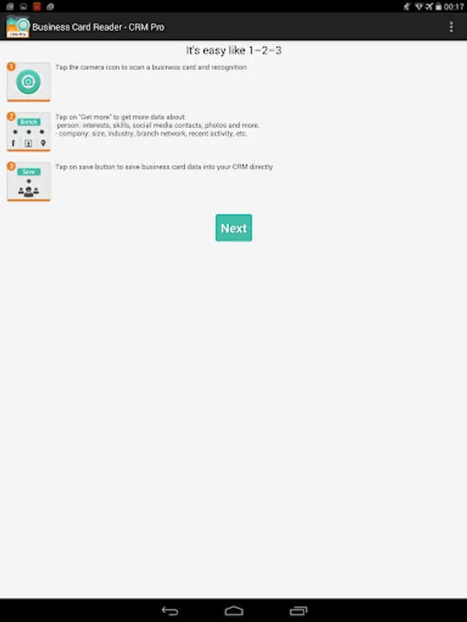 Snap a photo of the business card and Business Card Reader CRM Pro instantly exports all card data directly into your CRM. Moreover, this app helps you to find out more information about your potential client, partner, or colleague.