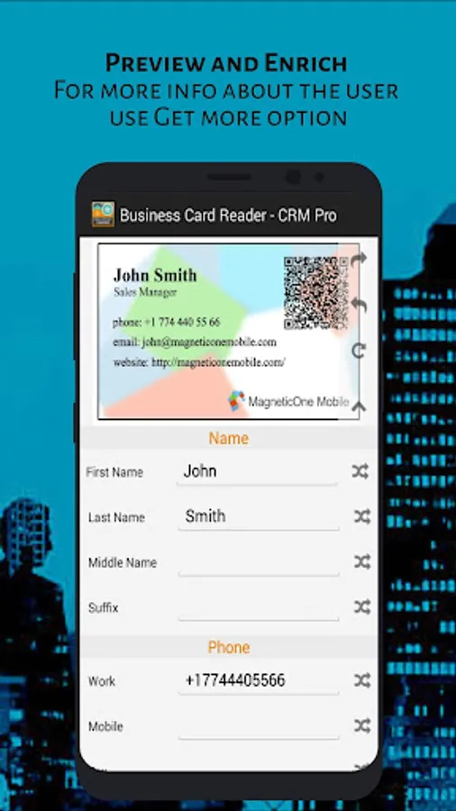 - Automatically add country phone code, if it’s missing in the business card phone number