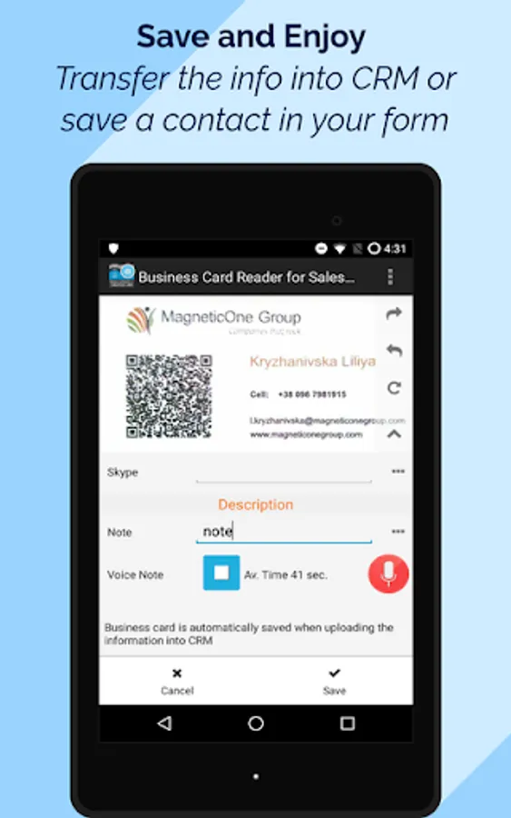 Simplify the way of filling the contact’s base, keep up with the modern world and use the best innovative business solutions, such as Business Card Reader from MagneticOne MobileWorks!