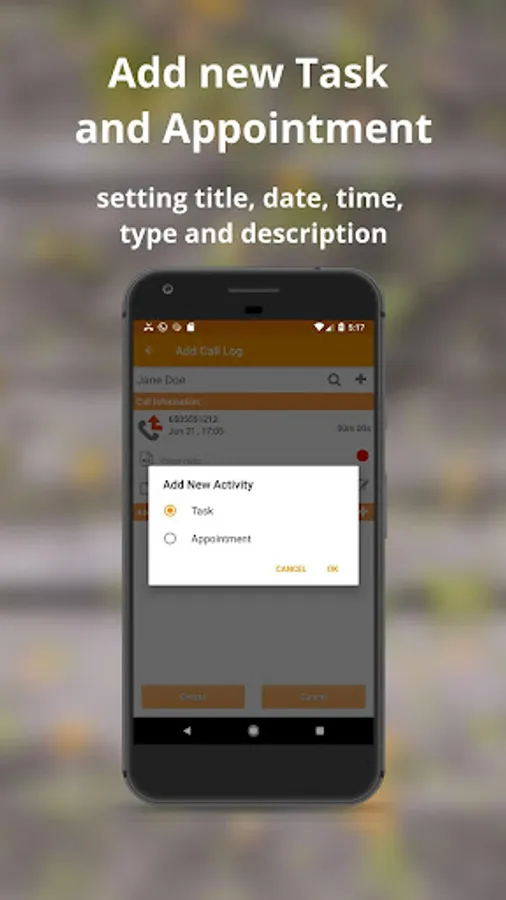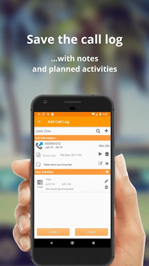 - The app provides you an opportunity to create planned activities into your CRM and set a reminder for them;