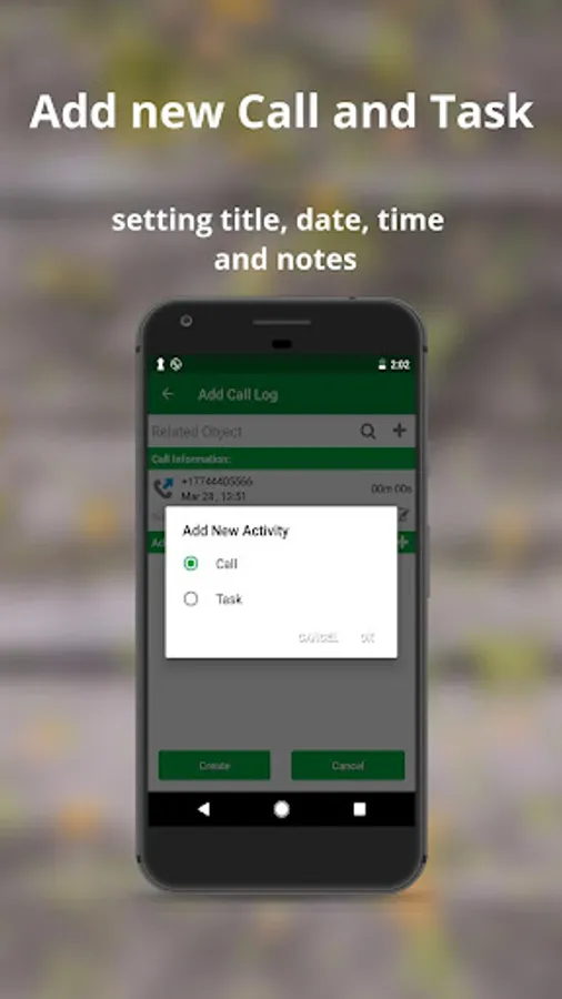 4. After the end of the call, you can choose to save it into your CRM, and the app will automatically send call info into the CRM (who called, date, call duration).