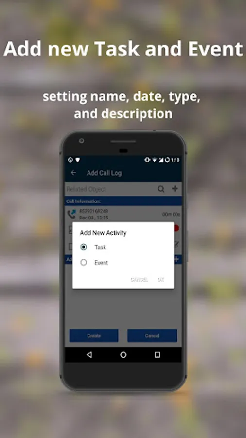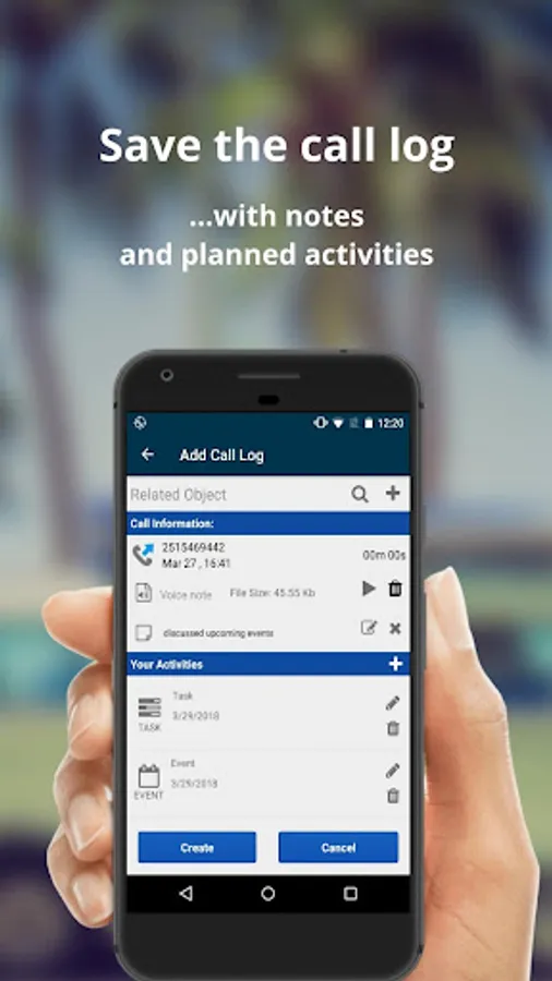 - The app provides you an opportunity to create planned activities into your CRM and set a reminder for them;