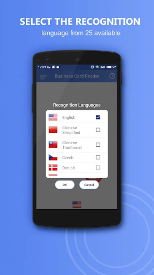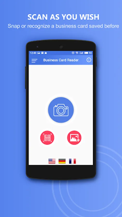 1. Take a photo of a business card, the app will automatically recognize all the information from it.