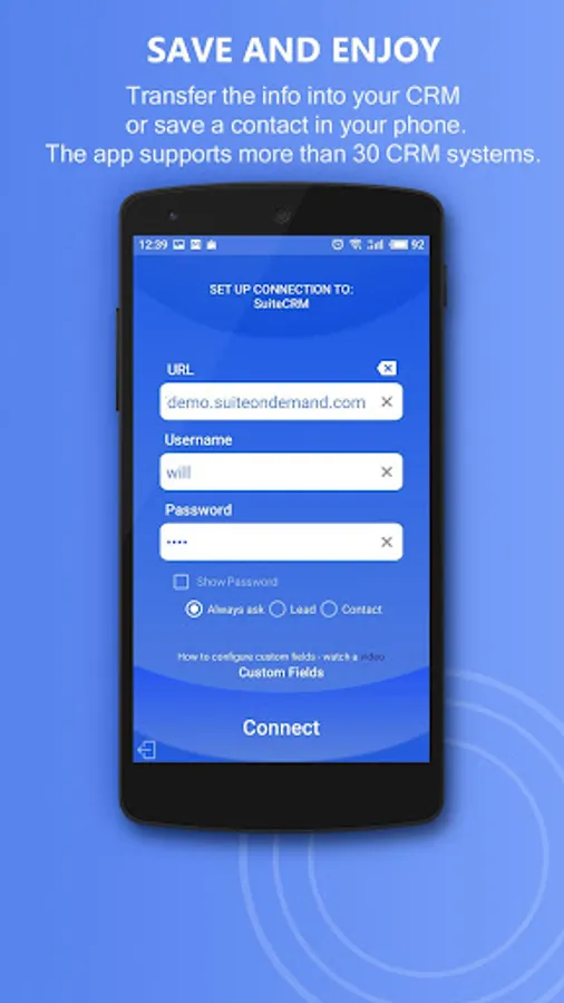 Business Card Reader Multi CRM is the easiest, fastest and secure solution for transferring information from paper business cards into the CRM systems using the camera of your smartphone. Take a picture of a business card and the application will scan and instantly export all card data directly to your CRM. In addition, this app will help you learn more about a potential client, partner or colleague. It is one of the best apps for CRM systems.