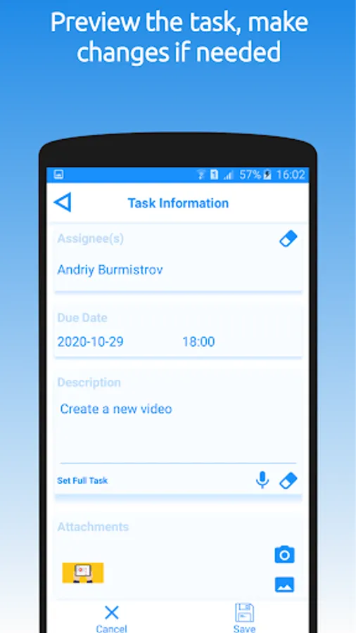 - Multi- language. You can use English, Ukrainian, or Russian to set the tasks. If you need the other language to be supported, please contact us by email talk2task@magneticonemobile.com