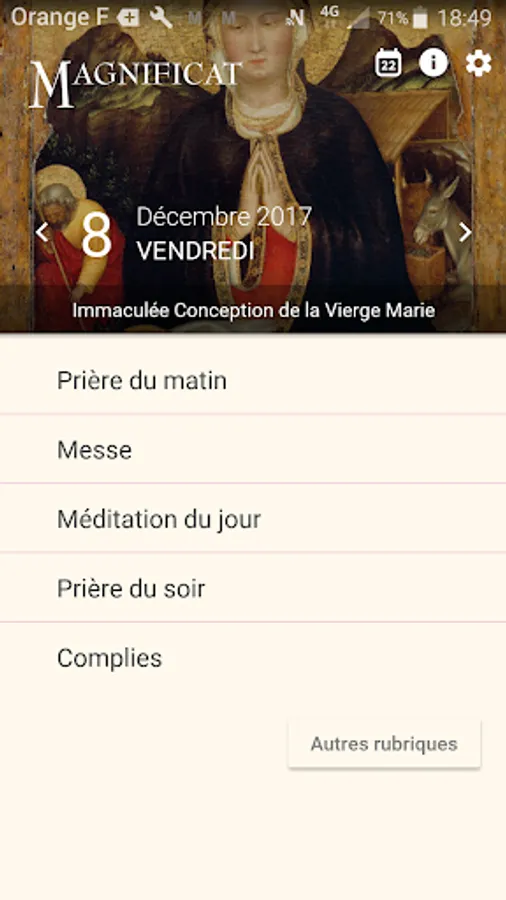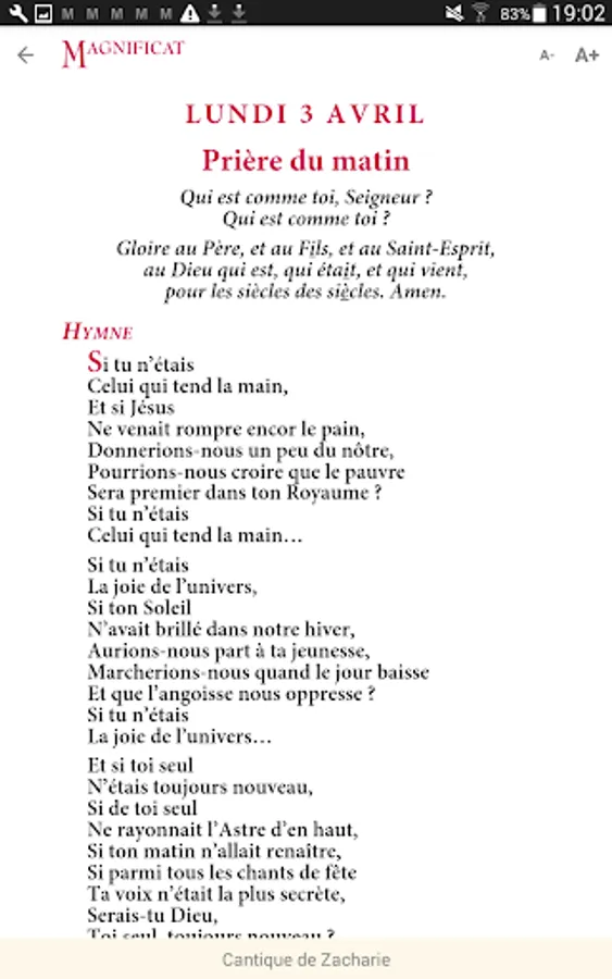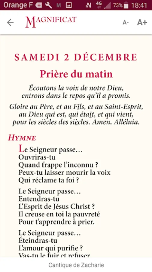 With the Magnificat application, find the treasures of the prayer of the Church as well as many monthly articles and a selection of music with you day after day in your spiritual life.