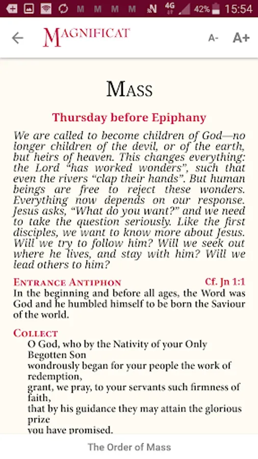 Welcome to the International English edition Magnificat App, which contains readings, texts and calendar appropriate for English-speaking countries using the Jerusalem Bible Lectionary.