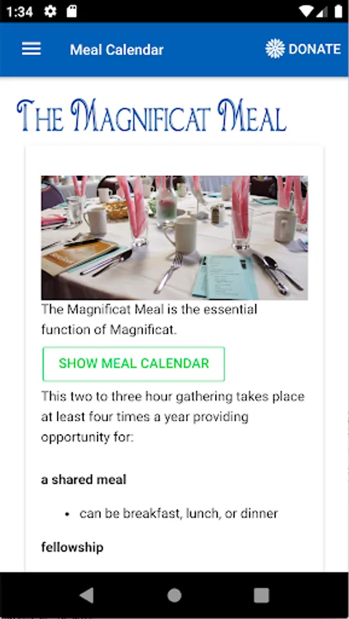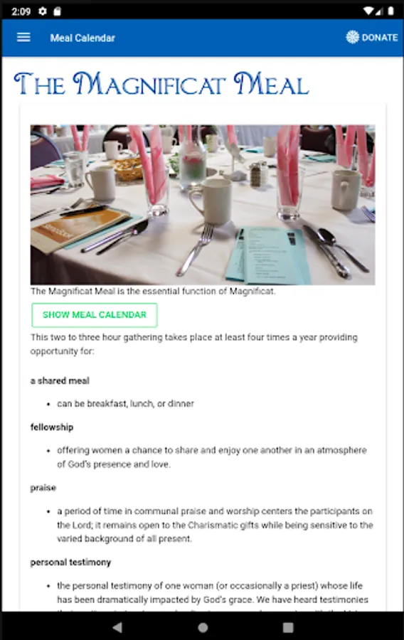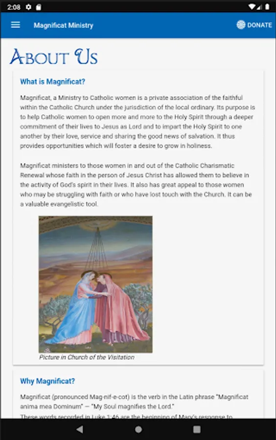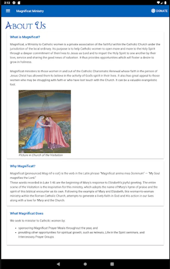Magnificat welcomes you to our Mobile App. You can learn about the ministry of Magnificat, donate online, obtain information about our Chapters, have an introduction to the Magnificat Meal and see our Meal Calendar, and connect with our online Podcasts. Please feel free to contact the local Chapter near you if you feel drawn to become part of our Ministry.
