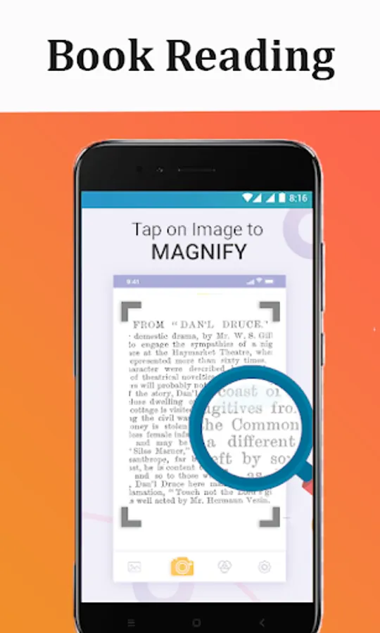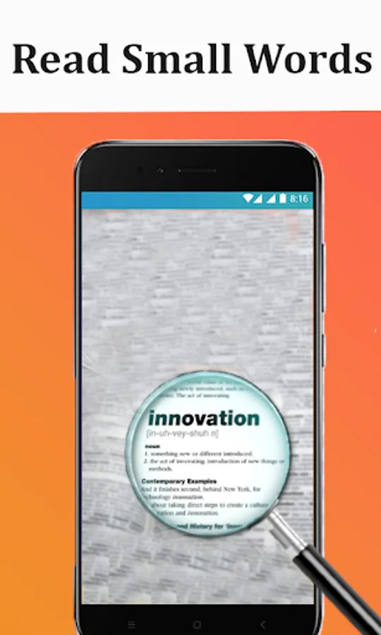 in reading such as Text messages, Newspapers, Notes, Distant material or any written or placed objects.This magnifier app- Free helps you to watch and read all things in