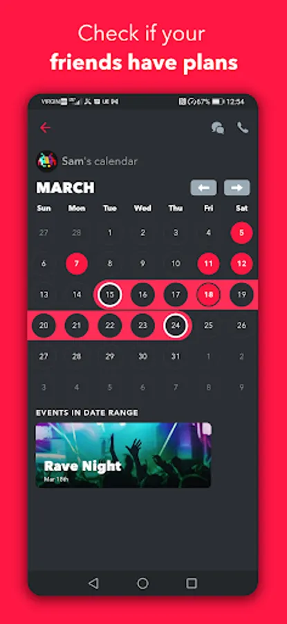 Choose a friend and view their calender. See when they have plans and organize an event around their schedule. You can also opt to keep an event hidden so your calendar will only display it to those invited.Date scheduler