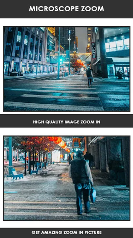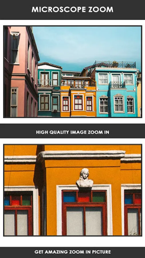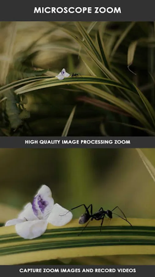Application Magnifying & Microscope Zoom HD Camera will let you take high definition photos and videos with zoom capability that depends on your device built-in camera.