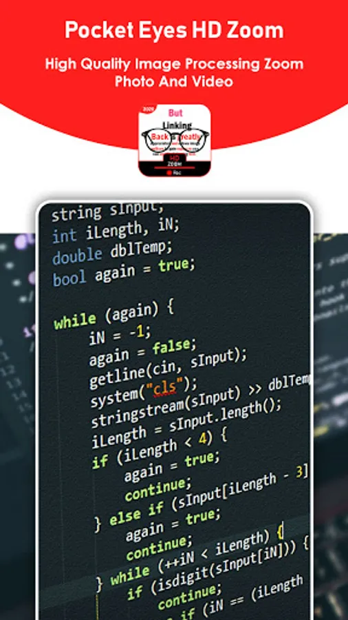 It is a smart magnifying glasses app which is used to focus on far away objects and for reading small text,