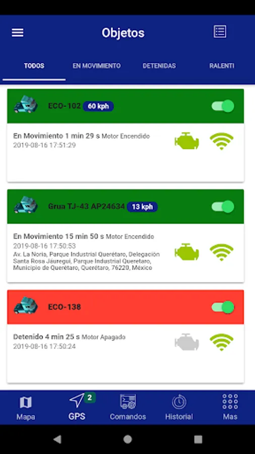 Locate in real time and view historical tours and events of your cargo, vehicles, machinery and your family through this App from the community of your mobile wherever you are.