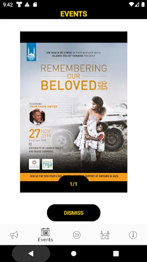 Stay engaged with the UW MSA through this app. Live announcements, events, halal food locations near by, prayer areas and prayer times are all available!