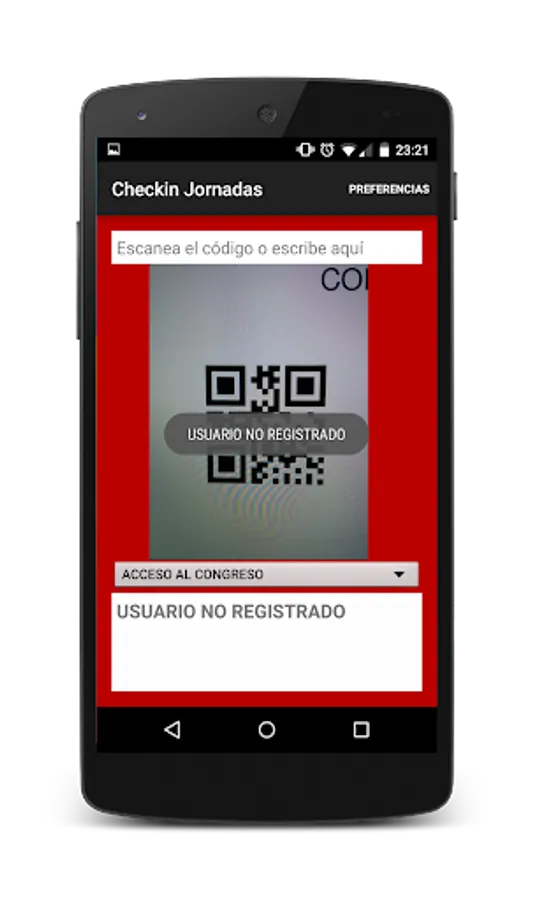 Application for validation of accreditations (checkin) in seminars and conferences by reading QR code.