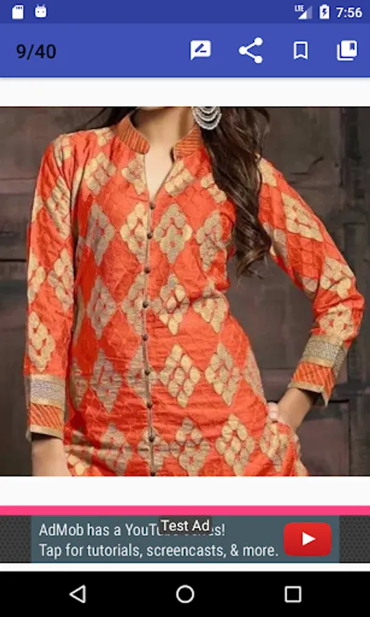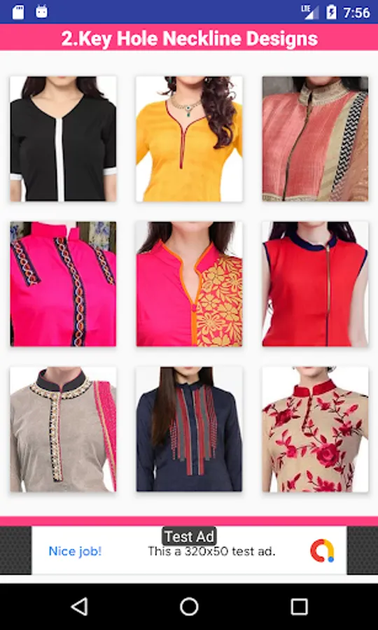 It helps ladies to select the best design for their suits. This app contains blouse neck designs for Salwar Kameez, Shirts, Kurtis etc.