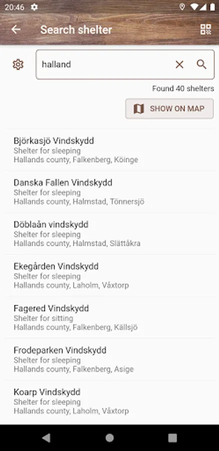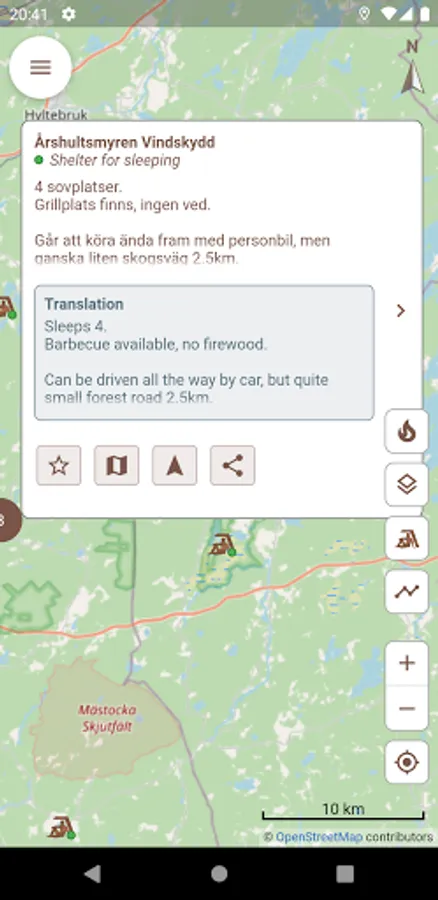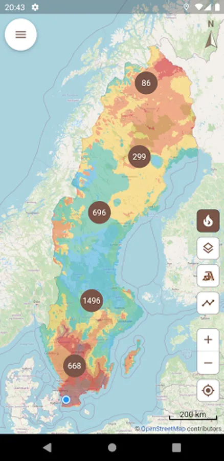 Vindskyddskartan (which means "Shelter map" in Swedish) gives you an easy to use overview of thousands of shelters on a map so you can easily find one near your location. The app also gives you easy access to current and forecasted fire risk and fire ban status, so you know when, where and how you can safely enjoy a campfire and cook food in nature.