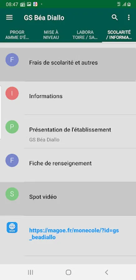 Administrative staff, teachers, students, parents, everyone has their own Space and can interact according to their prerogatives.