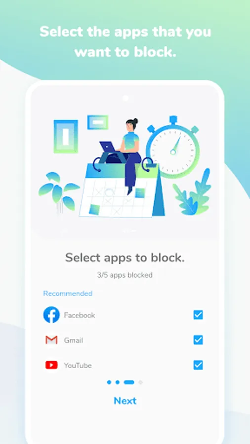 ✓ More self-control. Build your self-discipline by simply blocking the apps once you wake up and before sleep.