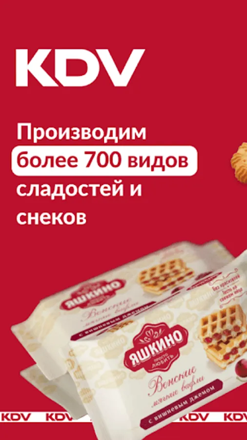 KDV Holding is the largest confectionery and snacks manufacturer in Russia. The holding has its own infrastructure: from distribution centers to the fleet. This allows you to keep the price at a democratic level and always deliver only fresh products.