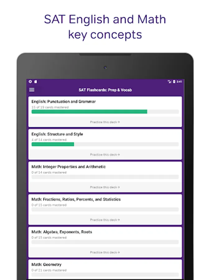 This app gives you access to all of Magoosh’s SAT flashcards. Sign in with a Magoosh account (or create a new one) to save your progress to the web.