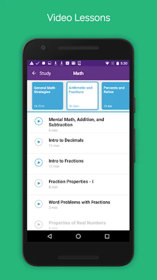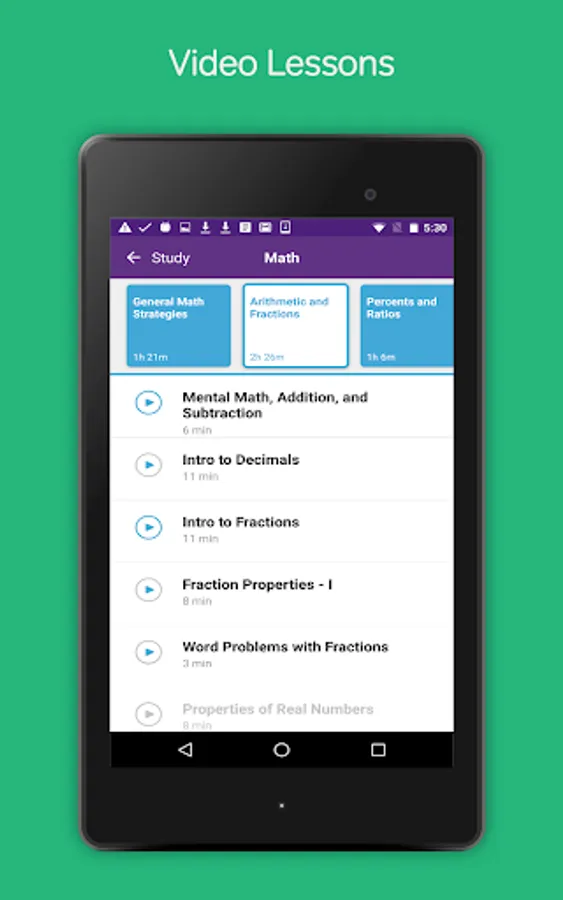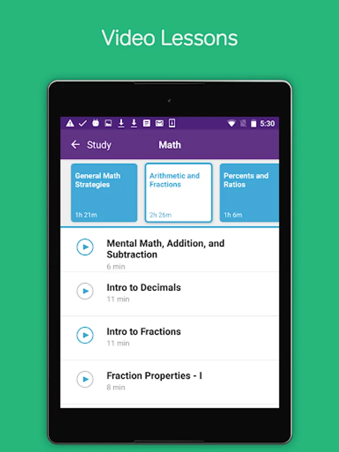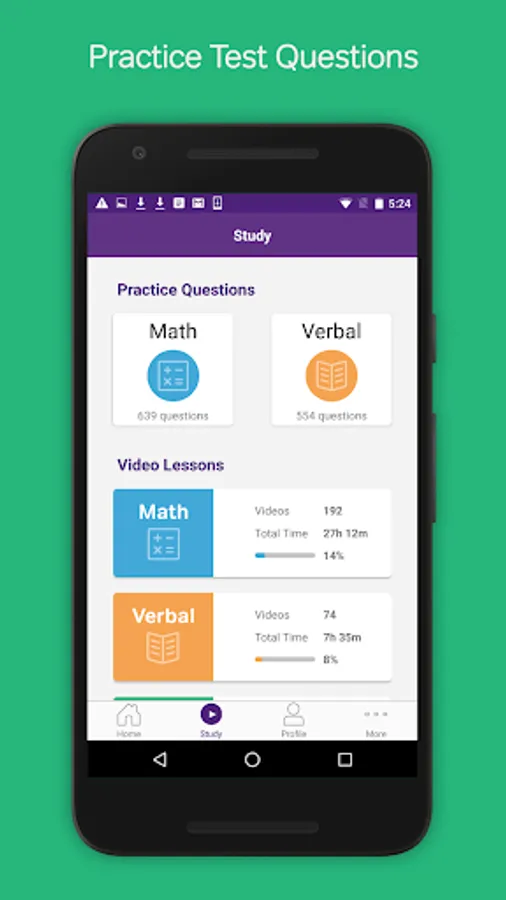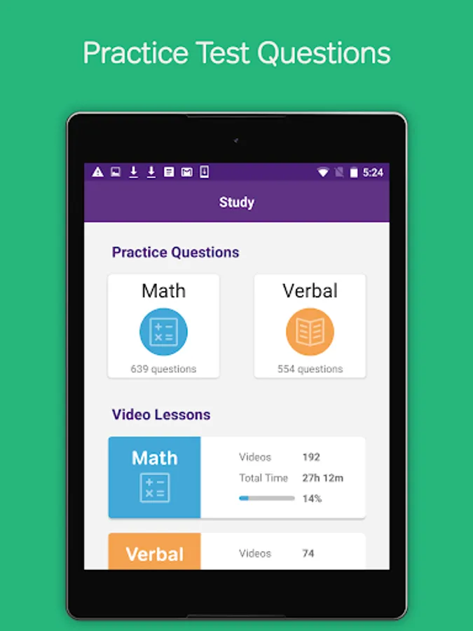 To get the most from the GRE Prep & Practice app, you should start with a few GRE practice questions to learn about their strengths and weaknesses. You should always read and/or watch the video explanations for each answer, even if you got the question right. They will give you tips & tricks for approach GRE questions more strategically. Next, fill in your knowledge gaps by watching relevant video lessons. Then, go back and do more GRE practice problems to solidify what you have just learned.