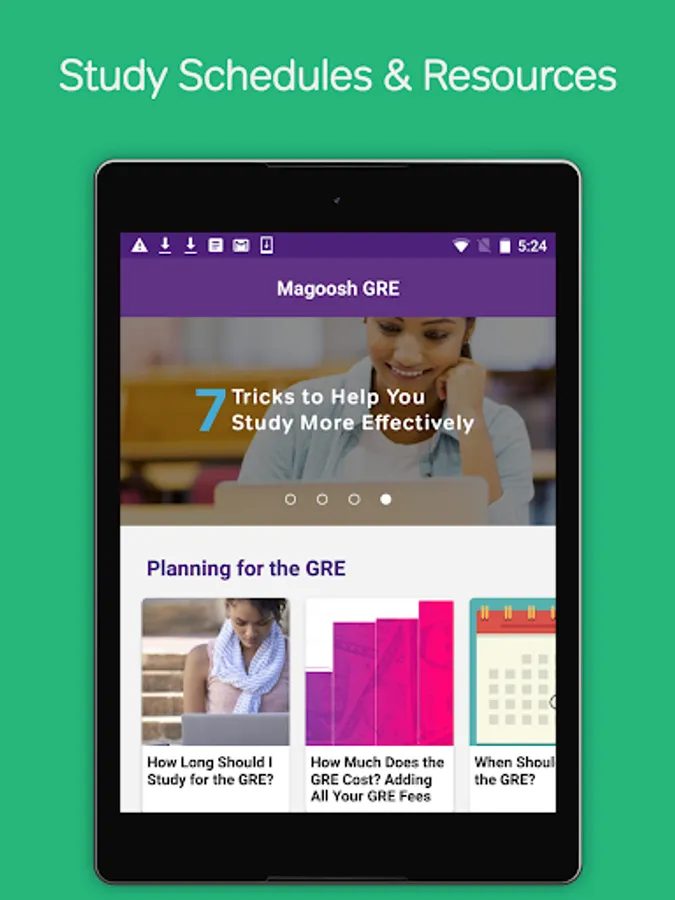 Millions of students have studied with Magoosh GRE. Magoosh's GRE test prep including expert-crafted GRE schedules, GRE practice questions and a complete guided GRE prep course. With this app, you can bring all of Magoosh's expert content with you on the go as you prepare for graduate school.