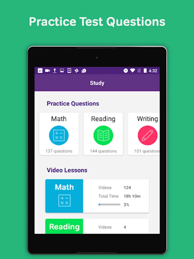 *Practice Math, Reading, and Writing exam questions*