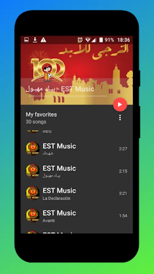 EST Music est une application de musiques mp3 des Supporter de E.S.T. "Espérance Sportive de Tunis". Vous pouvez écouter des chansons et lire les ♥ Paroles ♥ à partir d'une grande collection de chansons de l'espérance. Vous pouvez rechercher vos chansons préférées ou parcourir vos groupes préférées.