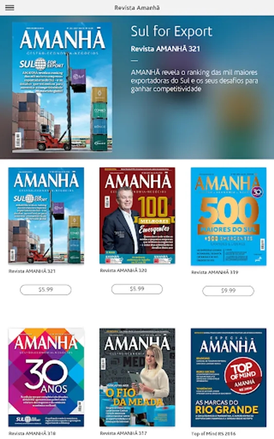 Founded in 1986, the Journal TOMORROW focuses on southern Brazil. Among the topics covered in the publication business are connected to the corporate environment as well as the southern management and finance. Among the most important are publications & Great Leaders, editing that list the thousand biggest companies in Paraná, Santa Catarina and Rio Grande do Sul The work is done in conjunction with the consulting firm PwC. In Brazil, TOMORROW pioneered the concept of Top of Mind survey. Currently, develops innovative projects through different media platforms - ranging from solutions for print and digital media to share classroom "live marketing", through market intelligence and alternative media. With these platforms, TOMORROW relates monthly with over 300 thousand executives and "decision makers" from around the south of Brazil.