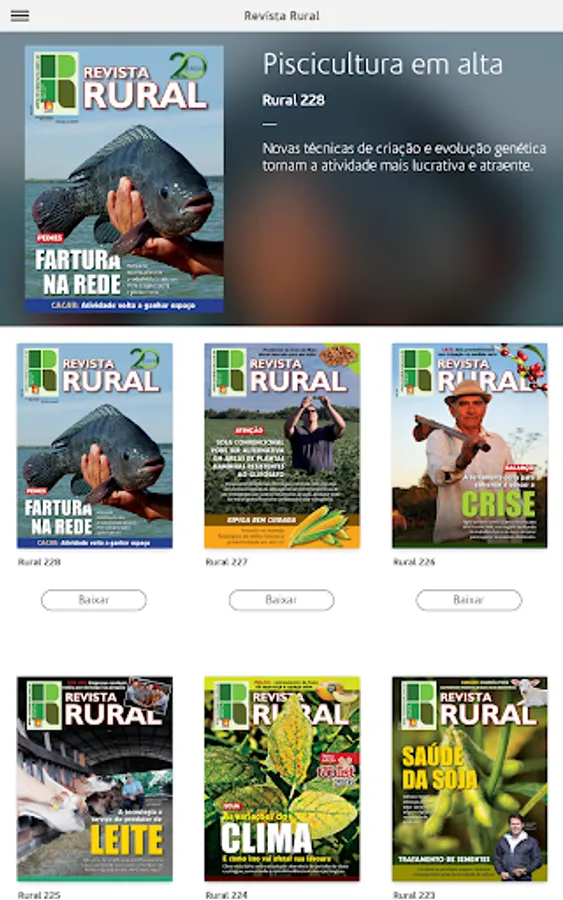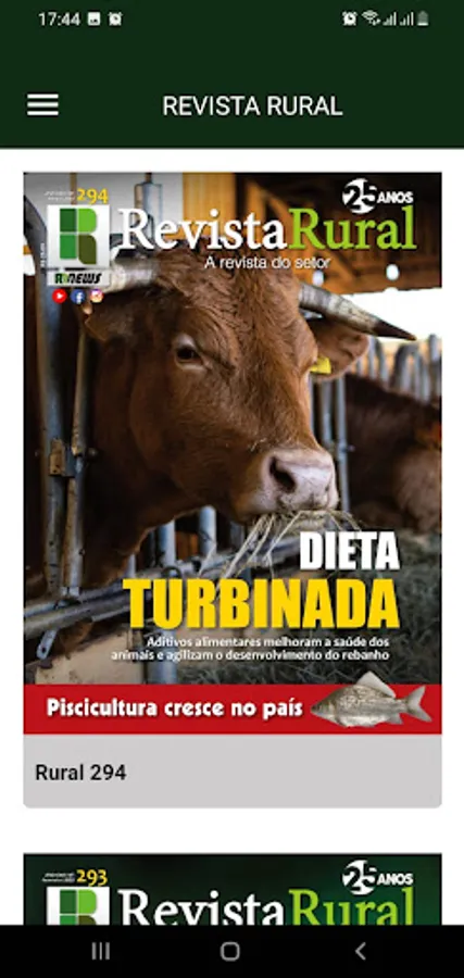 The Rural Magazine is the most complete industry magazine. It brings together in one publication all major topics related to agriculture and livestock, assisting in the dissemination of new technologies and new management concepts for the agro entrepreneur.