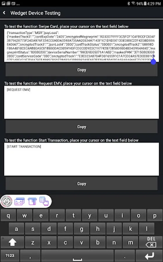 Wedget™ is a developer tool/keyboard extension to simplify card data acquisition for mobile browsers and native applications for MagneSafe® secure card reader authenticators (SCRAs). The extension eliminates the need for complicated programming with SDKs making it simple to securely capture and process sensitive payment and ID card data.