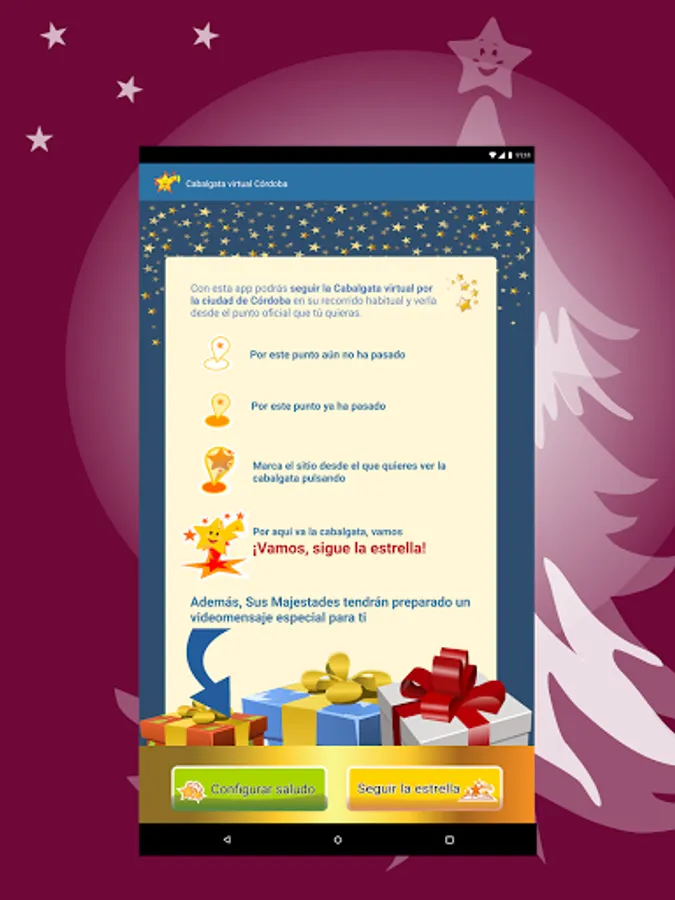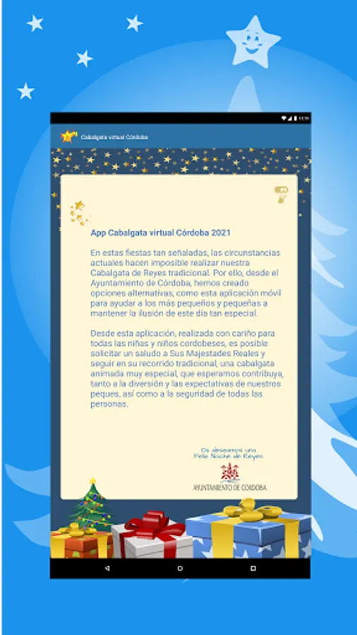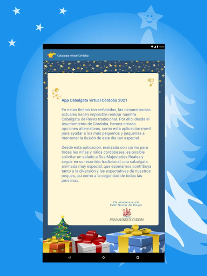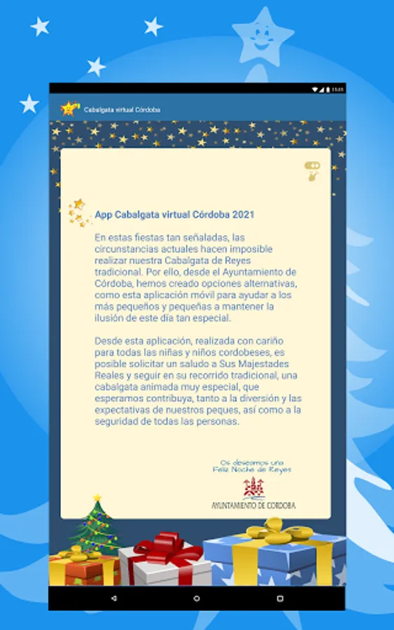 The Córdoba City Council has developed this official application so that all citizens, and especially the little ones, can live with enthusiasm the arrival in the city of Their Majesties the Magi from the East.