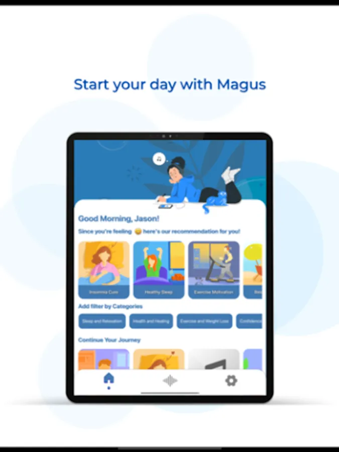 Enjoy automatic and hassle-free mental health healing and self-development sounds through the power of subliminal audios. Sleep easily, heal depression, fears, and anxieties, improve your mood, thinking skills, and habits, recharge yourself and your mind. There are many titles to choose from with more categories and training programs suitable for you. Mental health and self-development have never been easier and convenient with Magus.