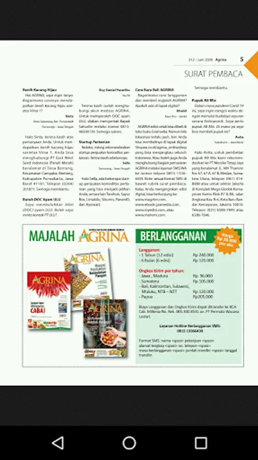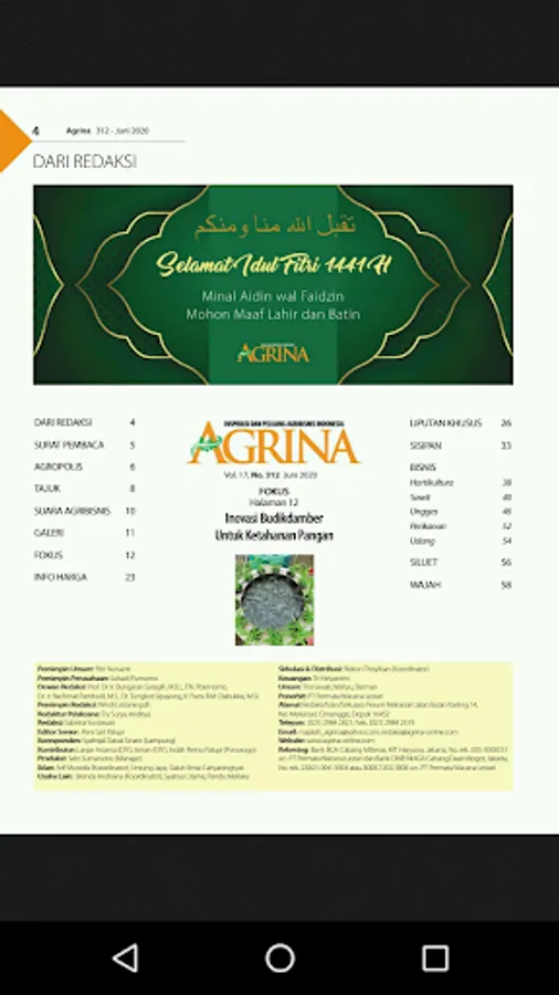 Majalah Agrina diterbitkan untuk menjadi inspirasi Agribisnis dan menjembatani wacana para stakeholder di sektor agribisnis. AGRINA edisi perdana diterbitkan perdana pada tanggal 27 April 2005 (dalam versi tabloid). Beragam rubrik kamibahas meliputi Fokus, Suara Agribisnis, Sayuran dan Buah, Tanaman Pangan, Perkebunan, Peternakan, Perikanan, Modal dan Mitra, Sarana Produksi, Khasiat, Wisata Agro, Resto, Wajah, Siluet, Hobi (tanaman hias, ikan hias, satwa hias), Kebijakan Pemerintah, Direktori, Seremonia serta Jendela dan Agenda. Setiap komoditas atau permasalahan yang diangkat menjadi topik atau fokus, kami bahas secara tematik sehingga dikupas secara mendalam dan tuntas dari hilir hingga hulu.