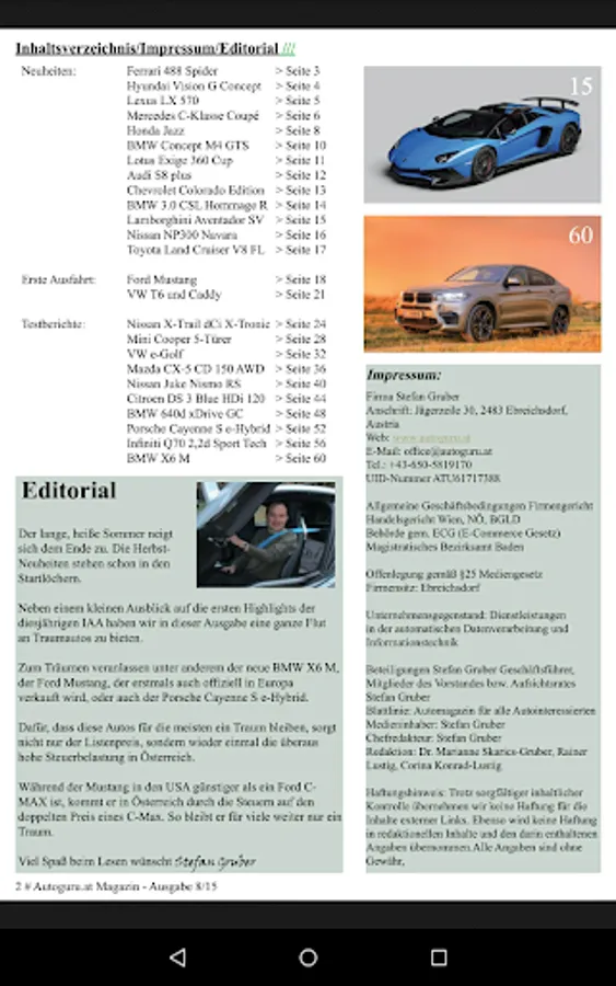 Automagazin für Autofans mit vielen News, Testberichten und auch Highlights, die man nicht überall findet. Vom Kleinwagen bis zum Supersportwagen reicht die Bandbreite an Fahrzeugen, die man im Autoguru.at-Magazin findet.Viele tolle Fotos geben dem Leser einen perfekten Eindruck vom jeweiligen Fahrzeug.
