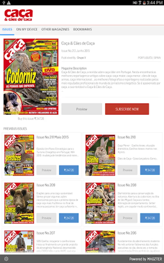 Caça & Cães de Caça, a revista sobre caça líder em Portugal. Nesta encontrará as melhores reportagens e artigos sobre caça: caça maior, caça menor, cães de caça, armas, caça internacional... as melhores fotografias e reportagens realizadas pelos mais reputados profissionais do mundo do jornalismo cinegético. Se é apaixonado por caça, a sua revista é a Caça & Cães de Caça.