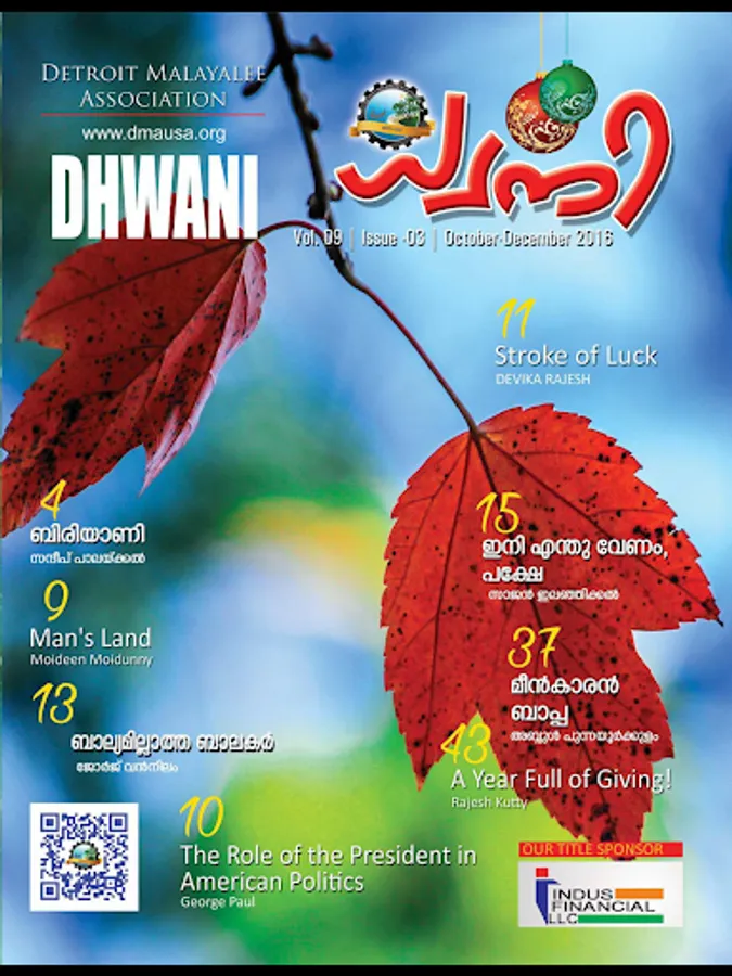Detroit Malayalee Association is a non-profit organization catering to the needs of the Malayalee community living in and around the Metro Detroit area. We encourage our youth to participate actively and educate our people on matters of civic consciousness, political awareness and ways to foster friendship between the Malayalee community and other communities who we interact on a regular basis. With our rich and colorful heritage our aim is to provide dynamism and diversity to the mainstream American society.