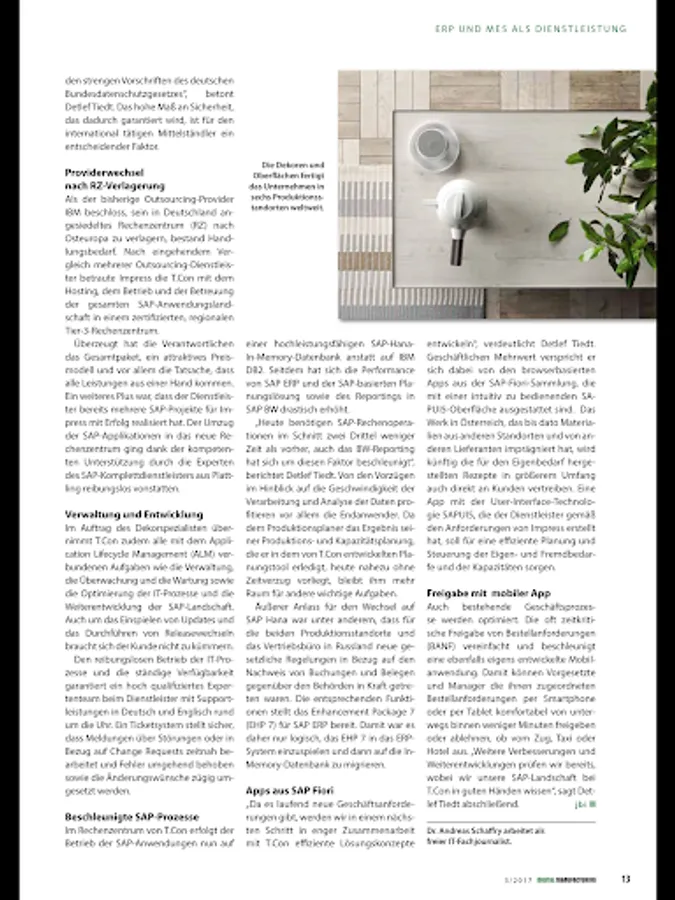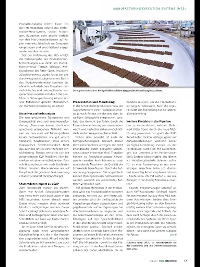 Im Mittelpunkt von DIGITAL MANUFACTURING stehen Grundlagen, Methoden, technische Trends, IT-Lösungen sowie praxisnahe Anwendungsbeispiele aus dem Bereich der digitalen Prozesskette in der Produktion. Das Magazin vermittelt, welche Produktivitätsvorteile sich in der Produktion durch die richtigen Strategien und Lösungen erzielen lassen.
